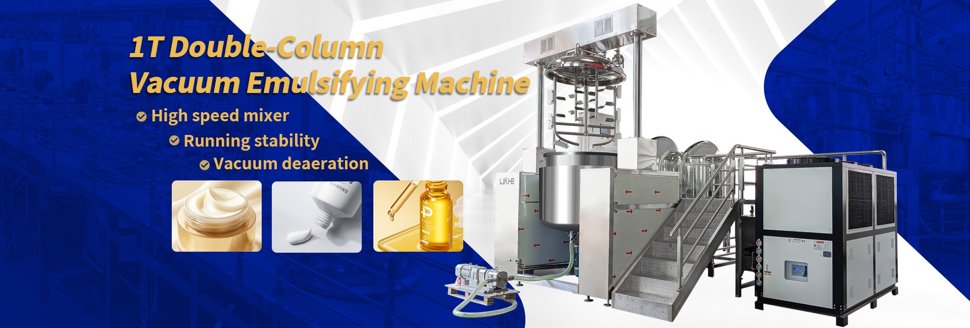 Main categories: Vacuum Emulsifying Mixer; Mixing Machine; Cosmetic Cream Mixer, Reactor, Filling Packing Line; Perfume Making Machine, RO Water Treatment